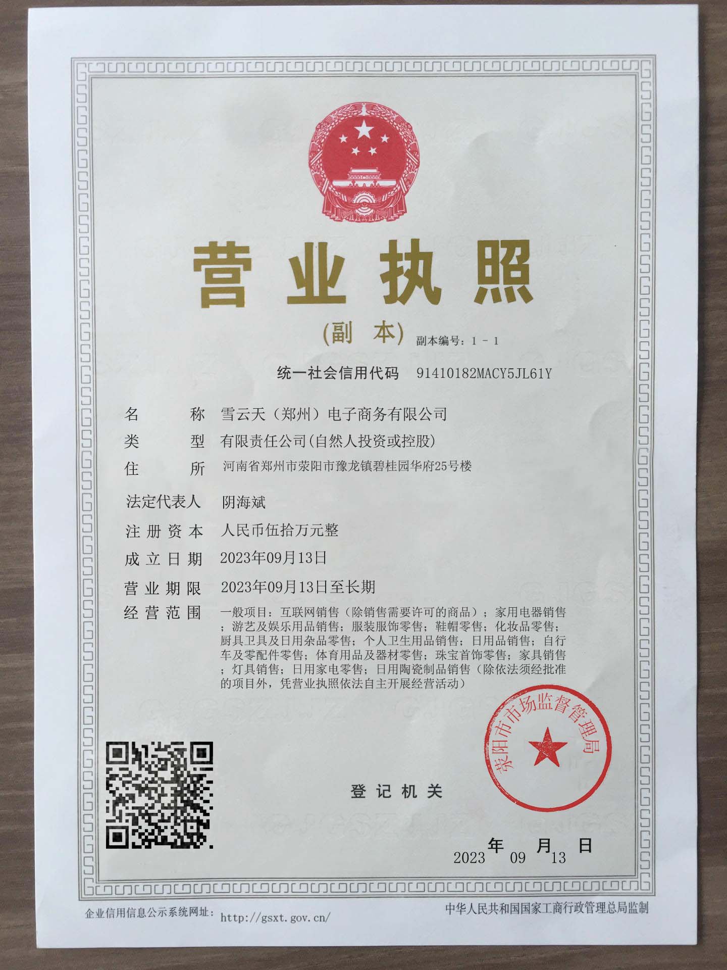 Corporate name:Xueyuntian (Zhengzhou) E-commerce Co., Ltd